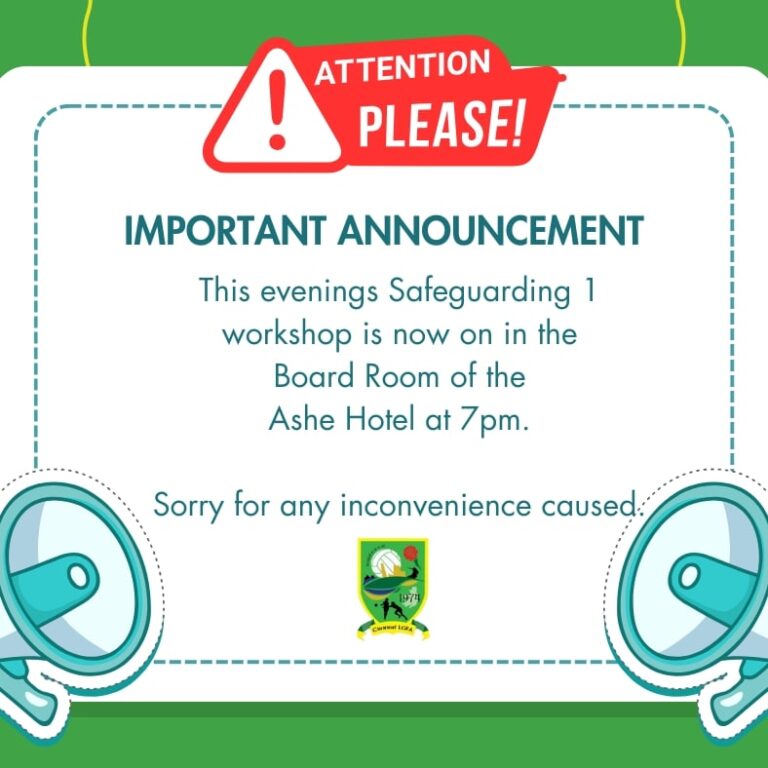 Important Announcement This evenings Safeguarding 1 workshop is now on in the boardroom at the … Read more