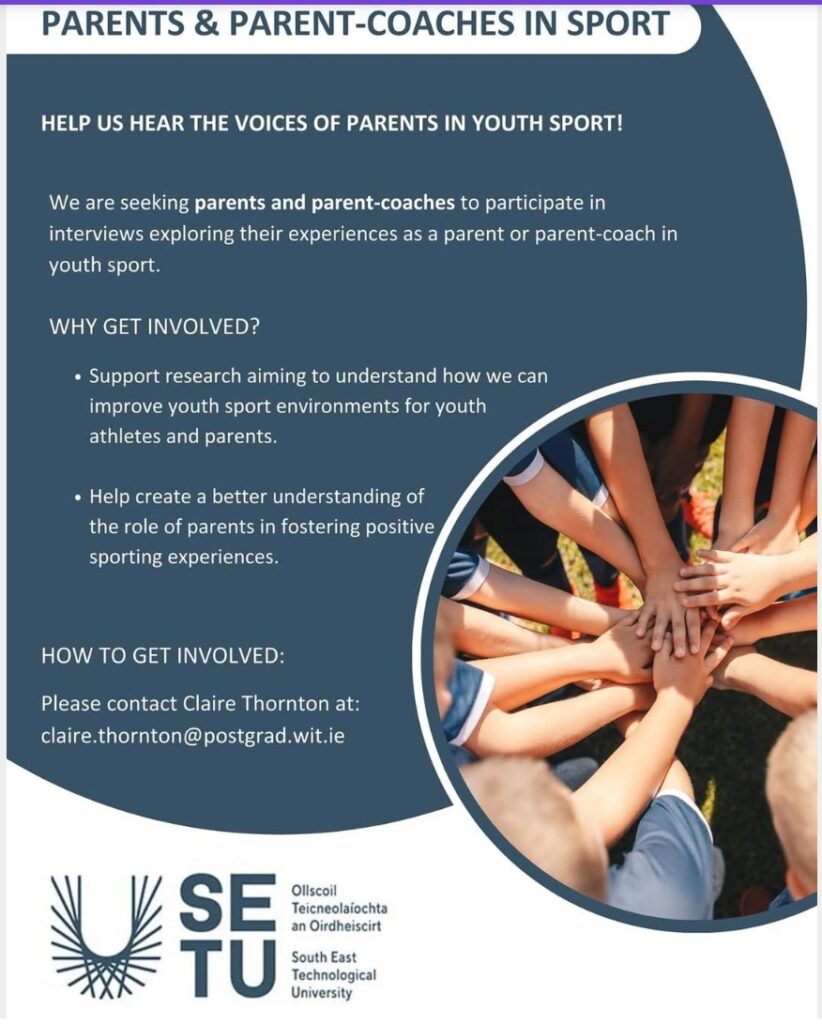 #YouthSport #ParentsInSport #ParentalEngagement #SportsResearch #ParentVoices #ParentCoach #SETU